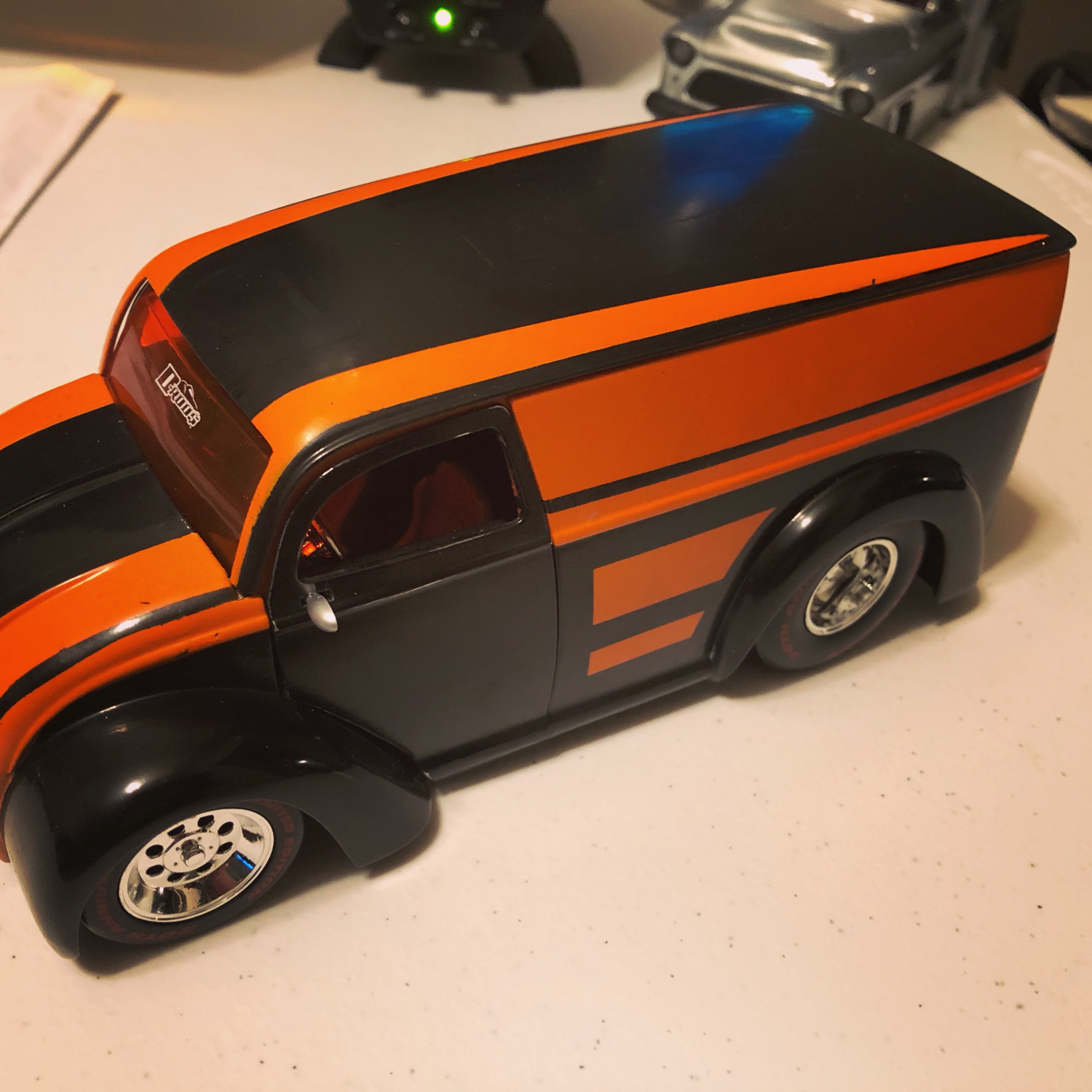 When I moved homes, my workshop was packed in boxes for about four months. I tried a lot of new ideas during that time frame, mainly trying different formats to apply decals on. This is a huge Jada Dairy casting. 1/18th scale I think. I never worked on this size model before.
