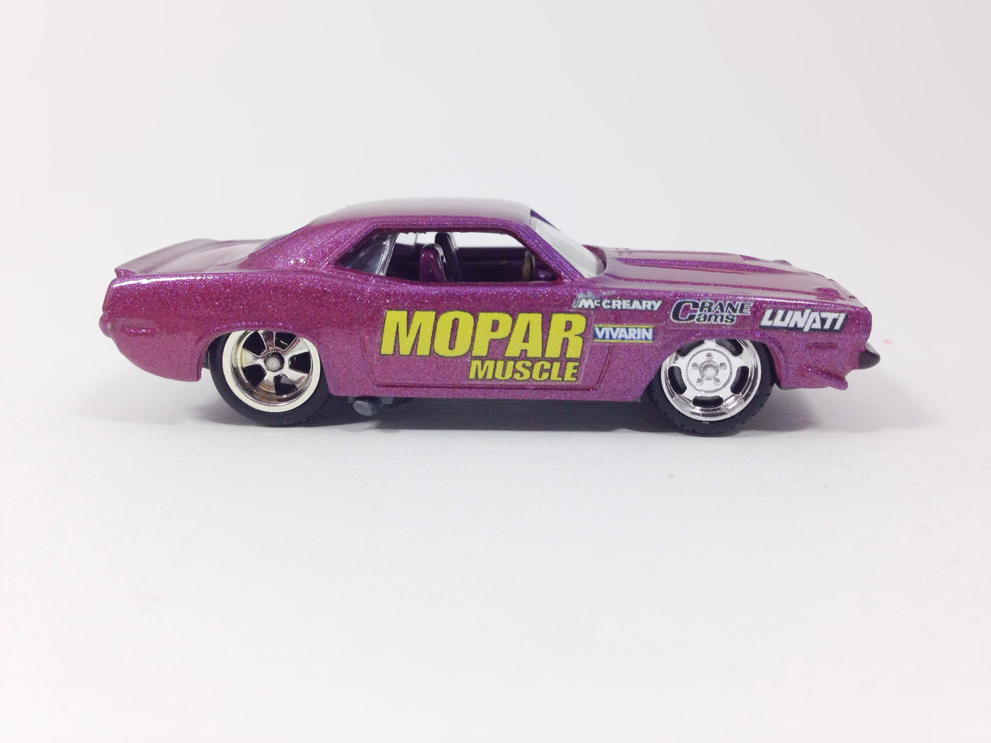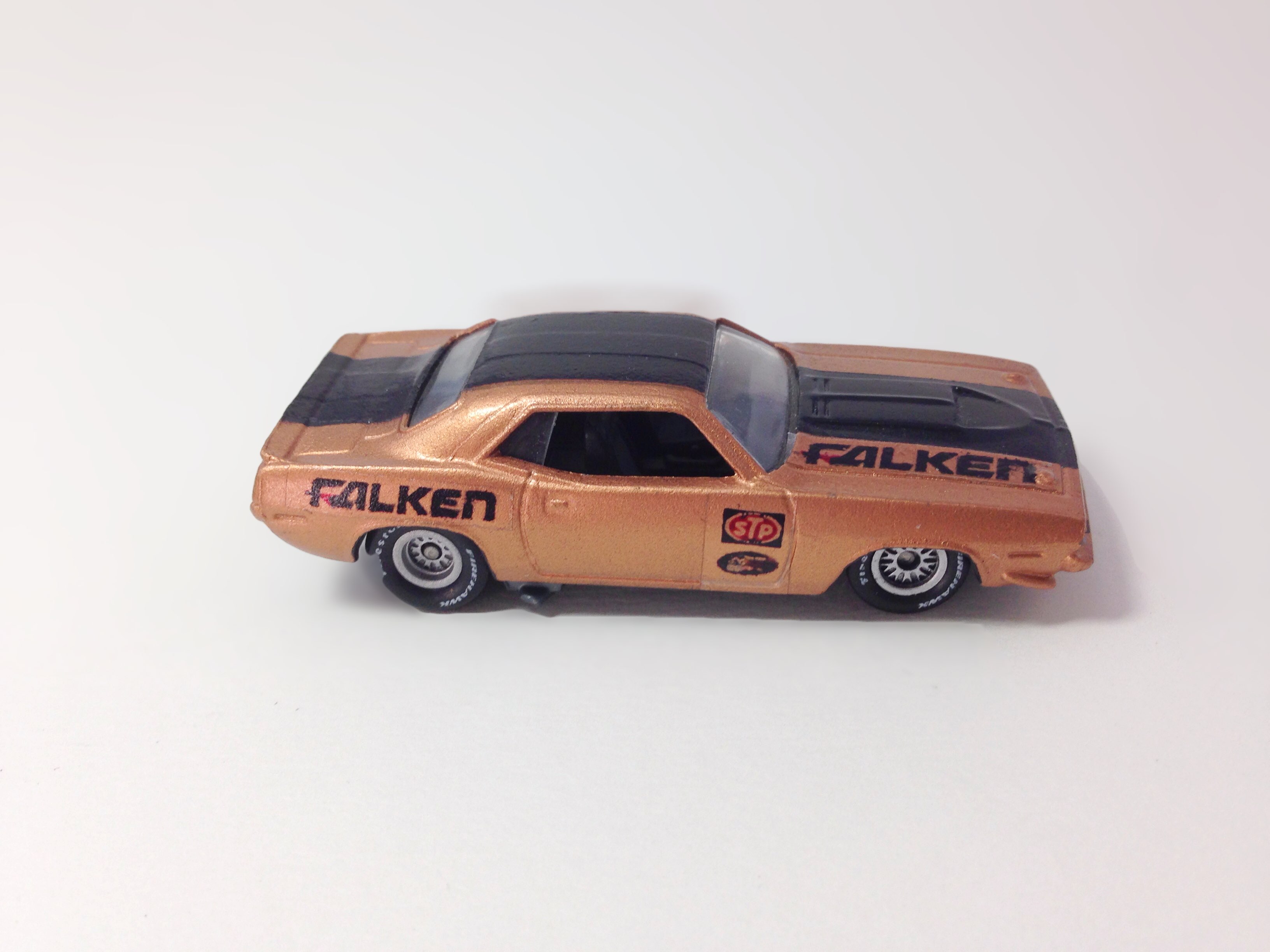 This copper AAR Cuda was the first custom I made, or at least the first one that didn’t get immediately remade. It has a lot of odd ball stuff going on, but it remains a favorite for sentimental reasons. The black stripes are made from tape, (not something I would recommend copying) and the decals were printed on my old inkjet printer on clear water slide paper. Pretty basic, but I think it turned out well considering I didn’t know what I was doing.