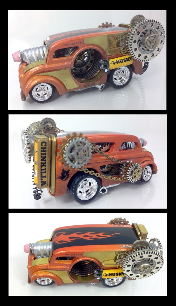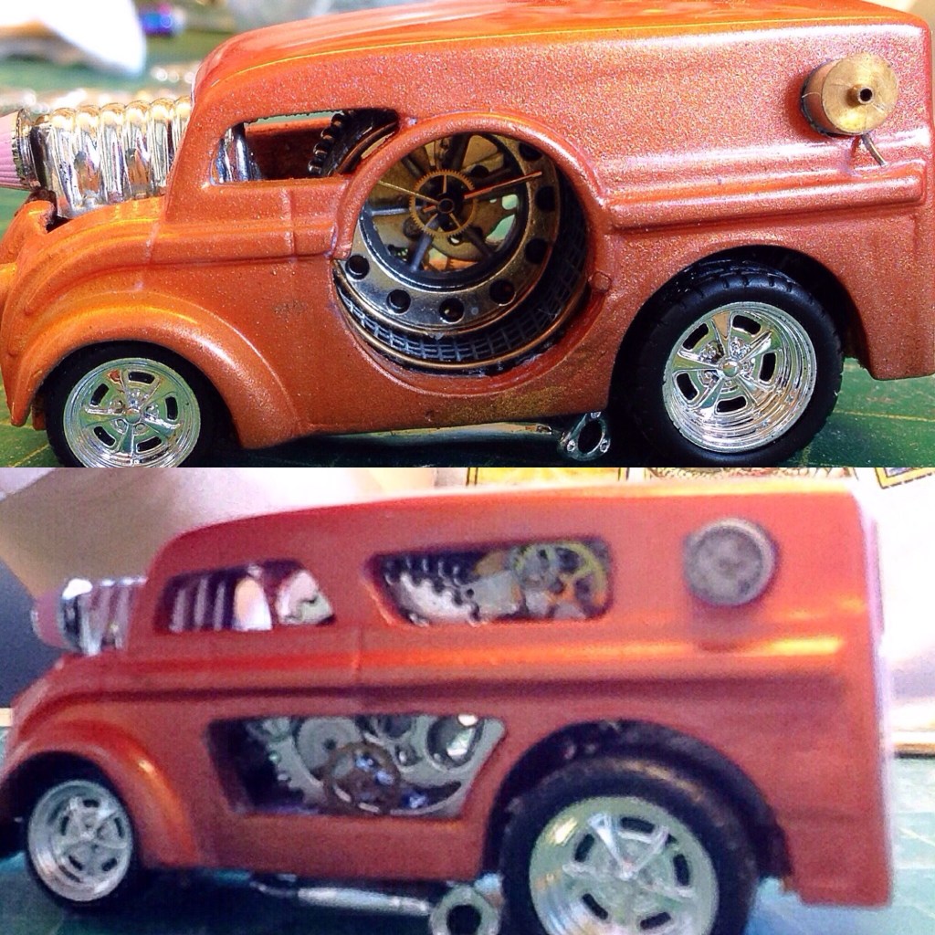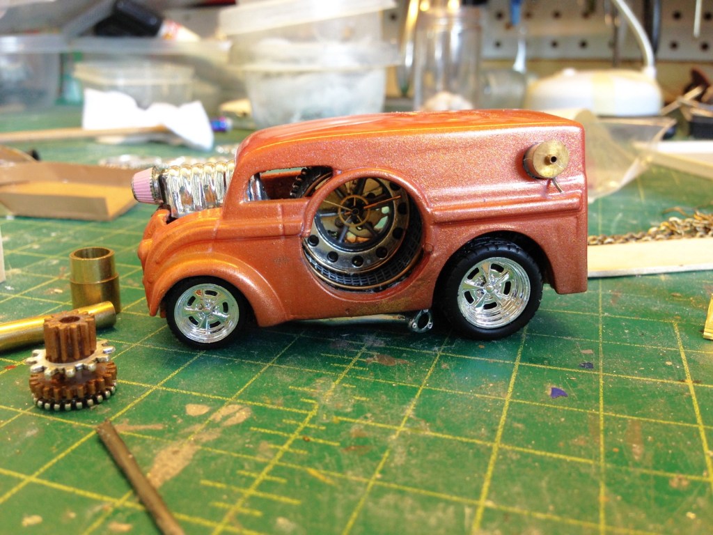 But, I did find some “Making Of” pics. This was a top five most complicated build, it took a really long time, like 30-40 hours. I didn’t have the tools I have now, and I just didn’t know what I was doing. The biggest issue was working around the paint job. There are a lot of mechanisms inside the car, so the paint had to be completed first, then glue and fit everything inside. Plus the little mouse wheel was intricate, way too small for my big fingers to deal with easily.